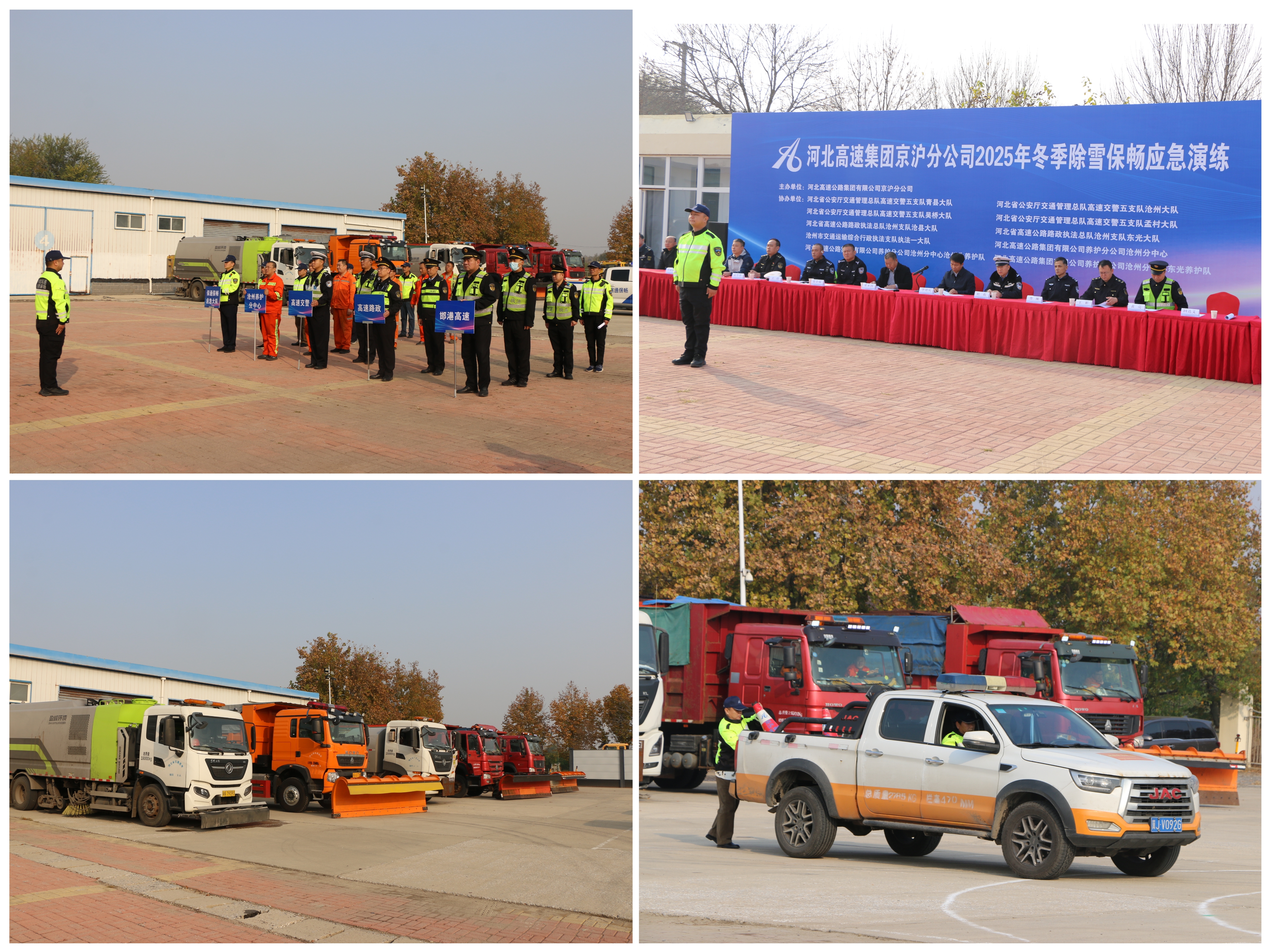 11月4日上午,京沪分公司联合邯港公司、高速交警、高速路政、养护分公司沧州分中心等9家单位开展2025年冬季除雪保畅应急演练。